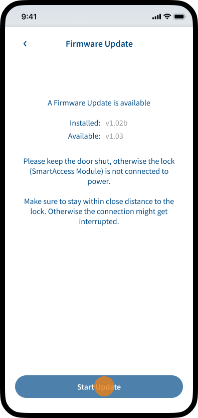 The firmware (software that is embedded in the SmartAccess Module) of your SmartAccess Module and the SmartAccess App should always be up-to-date to ensure maximum security and best compatibility between the SmartAccess Module and the SmartAccess App.