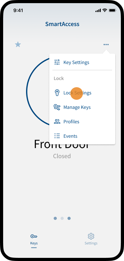Note: To access or adjust the Lock Settings, your smartphone must be within the Bluetooth range of the SmartAccess Module. Please make sure that your smartphone is near the SmartAccess Module or door.