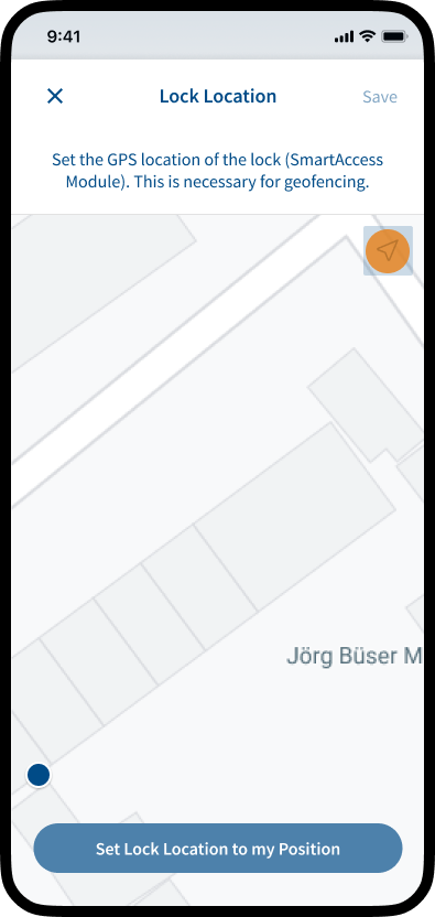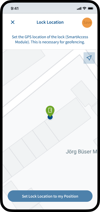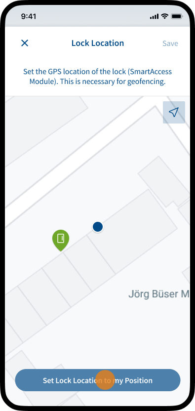 Note: If the position cannot be set correctly, you can set the position of the lock manually by tapping on the desired location on the map. The position of the lock and the position of your smartphone should be the same.