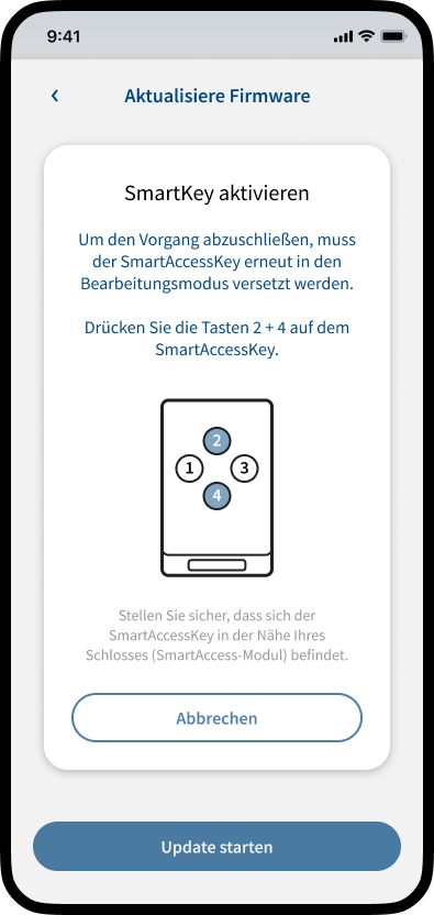 Bei Bedarf muss der SmartAccessKey über das entsprechende SmartAccess-Modul neu eingerichtet werden.