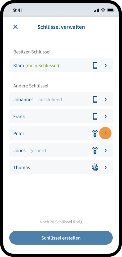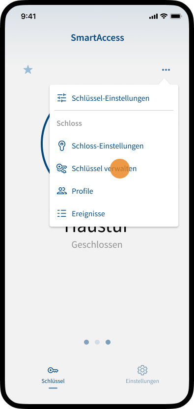Um den SmartAccessKey wieder mit dem aktuell verbundenen SmartAccess-Modul verwenden zu können, müssen Sie den SmartAccessKey über Schlüssel verwalten -> Schlüssel hinzufügen erneut hinzufügen. Weitere Informationen zum Hinzufügen von Schlüsseln finden Sie im Kapitel Schlüssel verwalten.