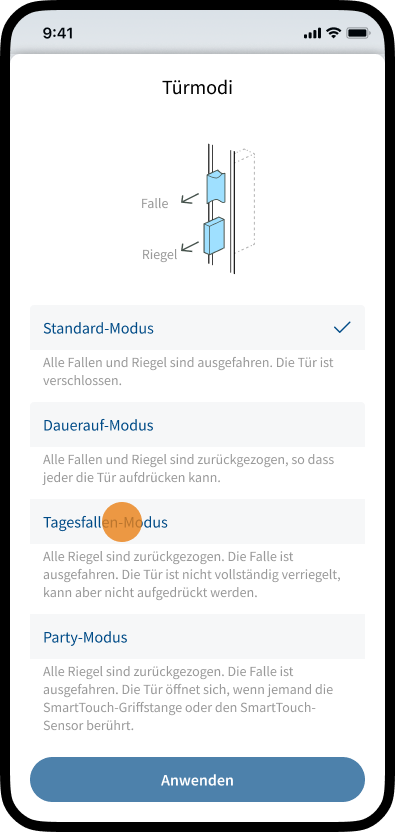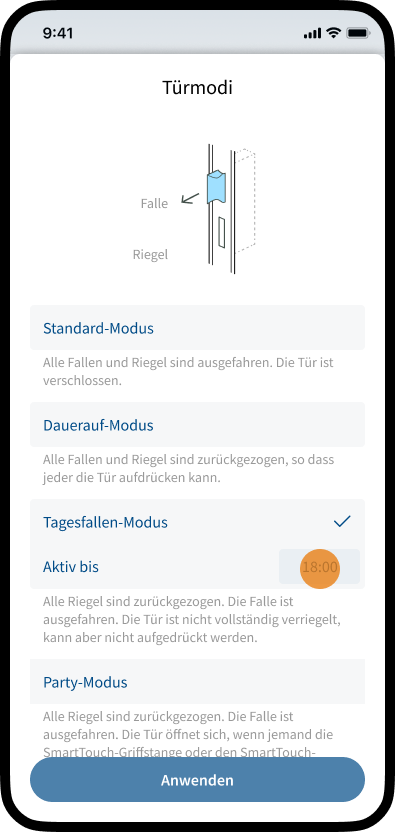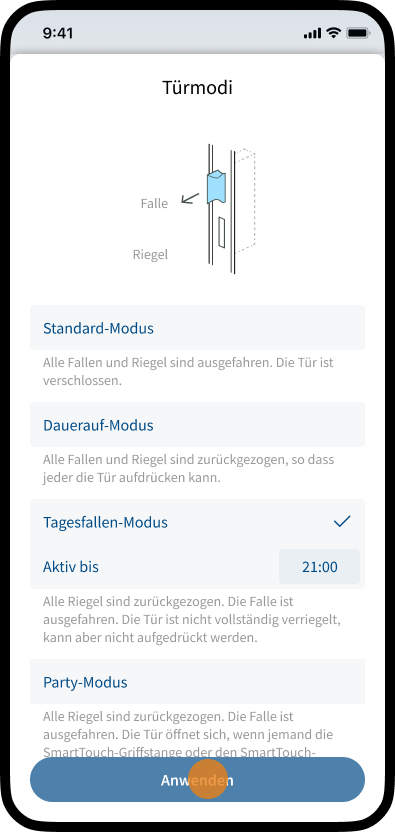 SmartAccess bietet die Möglichkeit, verschiedene Türmodi zu aktivieren.